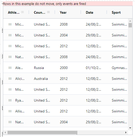 <div class="example-header" style="background: #ffdddd">Rows in this example do not move, only events are fired</div>