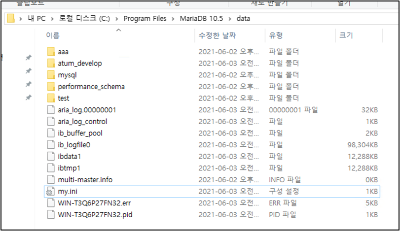 - datadir: 데이터베이스 파일이 저장되는 디렉토리 경로