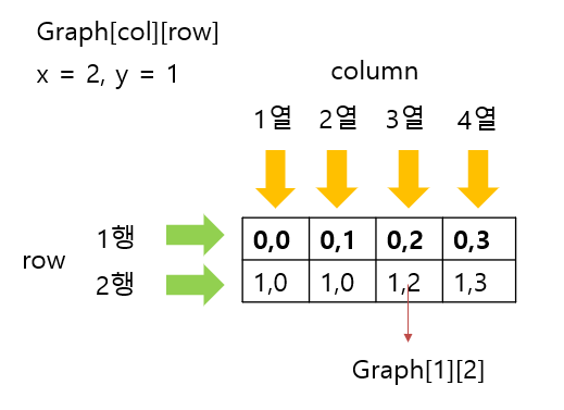 2. 2차원 배열인 graph를 초기화 하는데 graph[y좌표][x좌표]로 들어간다!!