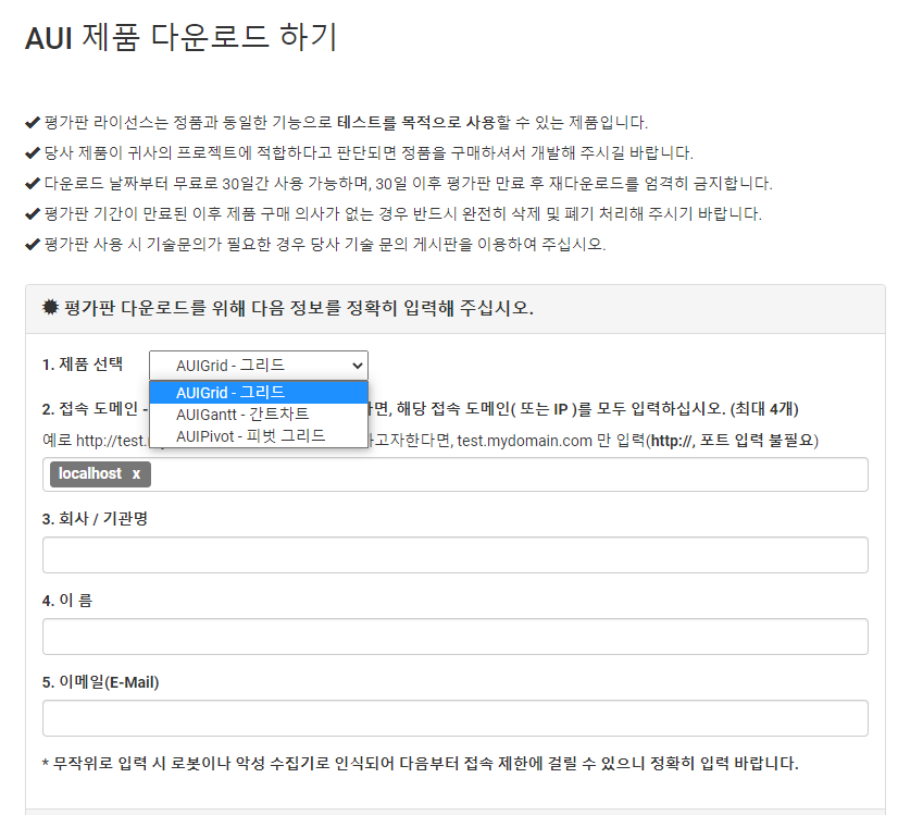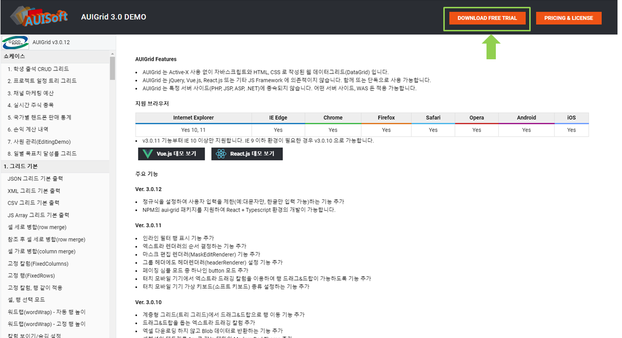 HTML5 자바스크립트 그리드(javascript grid) - AUIGrid