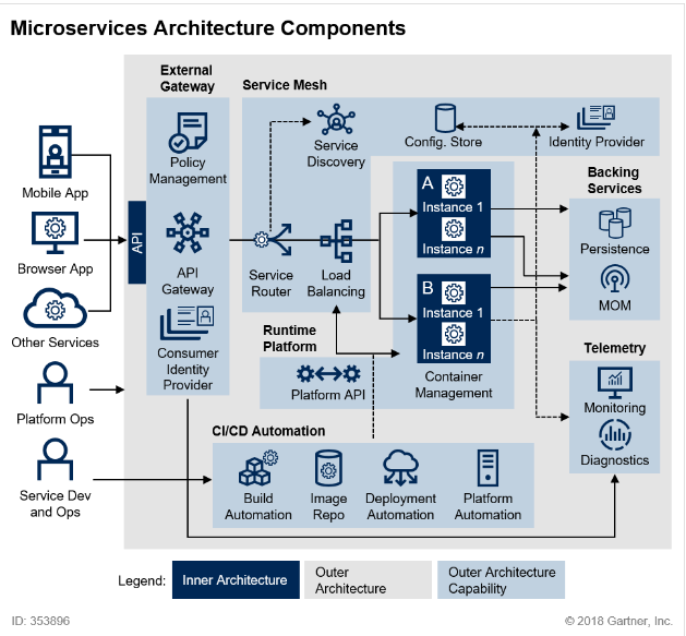 가상 컴퓨터, Docker 컨테이너 또는 프로세스로 구현된 관리 컨테이너 사용. - 외부 게이트웨이: