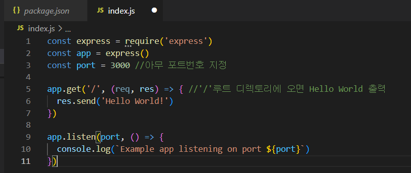 backend 서버 시작하면 index.js에서 시작! 시작점이 되는 파일 new파일로 생성(내용 없는상태)