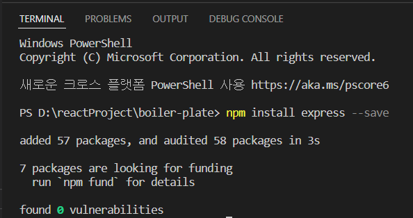 --save 옵션은 아래 package.json에 express버전을 표시하는 것