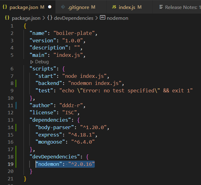 "backend": "nodemon index.js" 추가