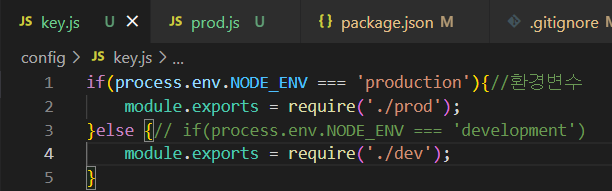 여기서 Key 이름과 prod.js 에서 process.env.MONGO_URI 가 같아야함.