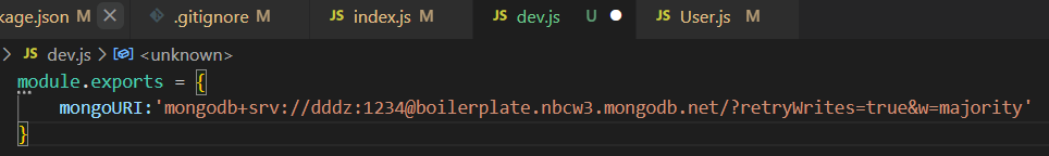 몽고계정 정보가 들어있던 자리에 위에서 선언한 변수 입력