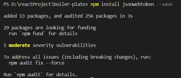 npm install jsonwebtoken --save