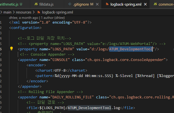 Spring이나 일반 java 프로그램의 경우 logback.xml 파일을 resources 디렉터리에 만들어서 참조하지만 Spring Boot의 경우에는 아래 3가지 중 한 가지 방법을 선택합니다. application.properties에 설정 resources/logback-spring.xml에 설정 resources/logback.xml에 설정 //logback-spring.xml UTF-8 %d{yyyy-MM-dd HH:mm:ss.SSS} %-5level [%thread] [%logger{36}:%line] - %msg%n ${LOGS_PATH}/PROJECT_NAME.log UTF-8 %d{yyyy-MM-dd HH:mm:ss.SSS} %-5level [%thread] [%logger{36}:%..